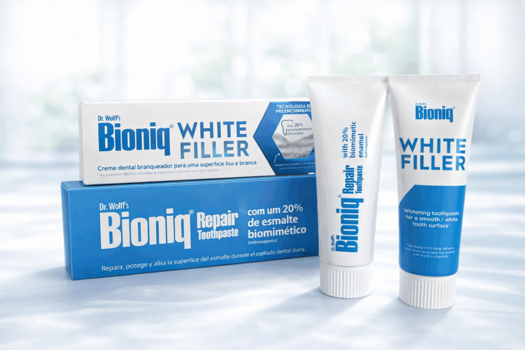 A segunda marca escolhida para a estreia é Bioniq, linha de saúde bucal que aposta em uma tecnologia considerada uma das mais relevantes da odontologia internacional: a hidroxiapatita biomimética.