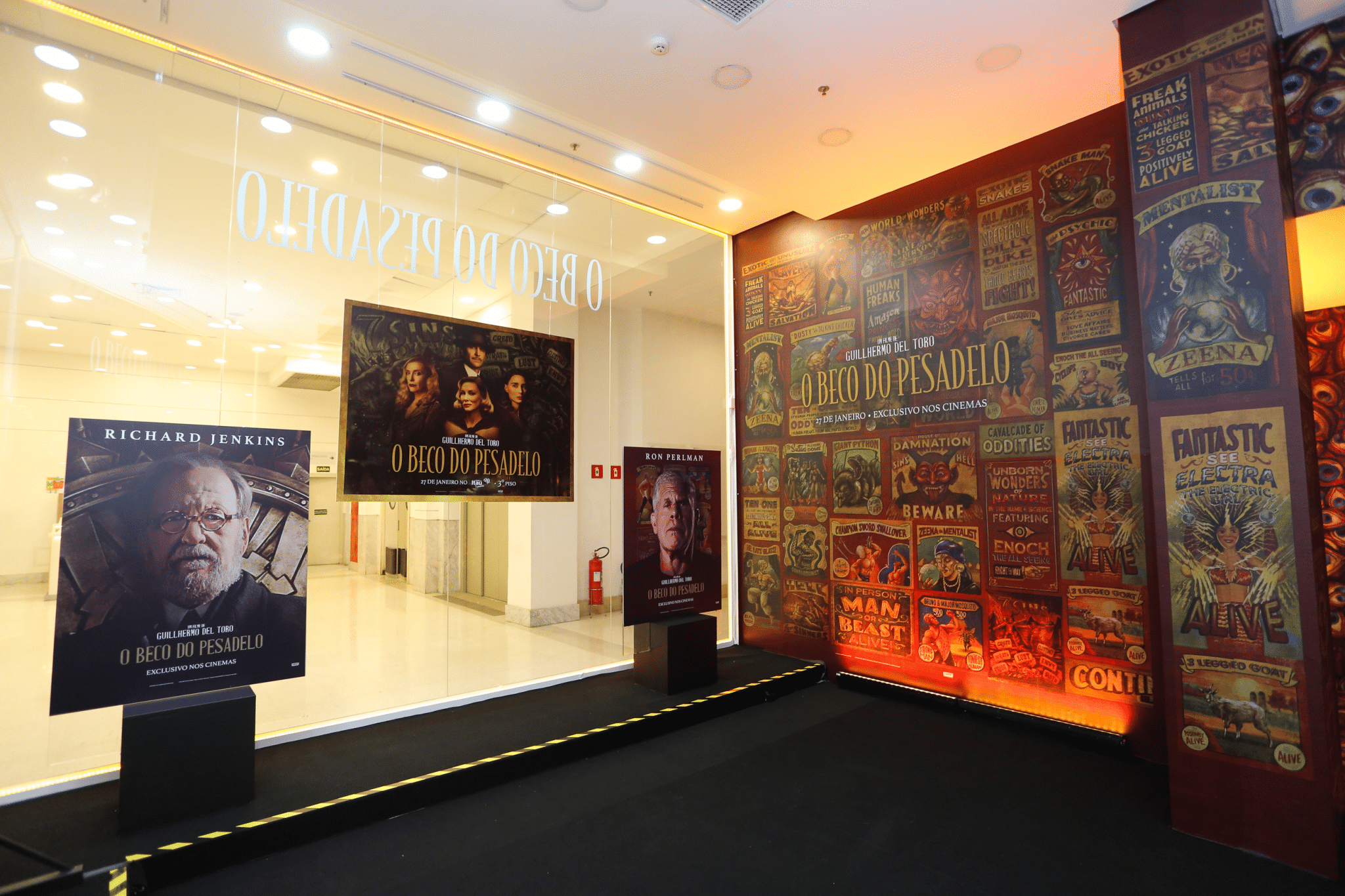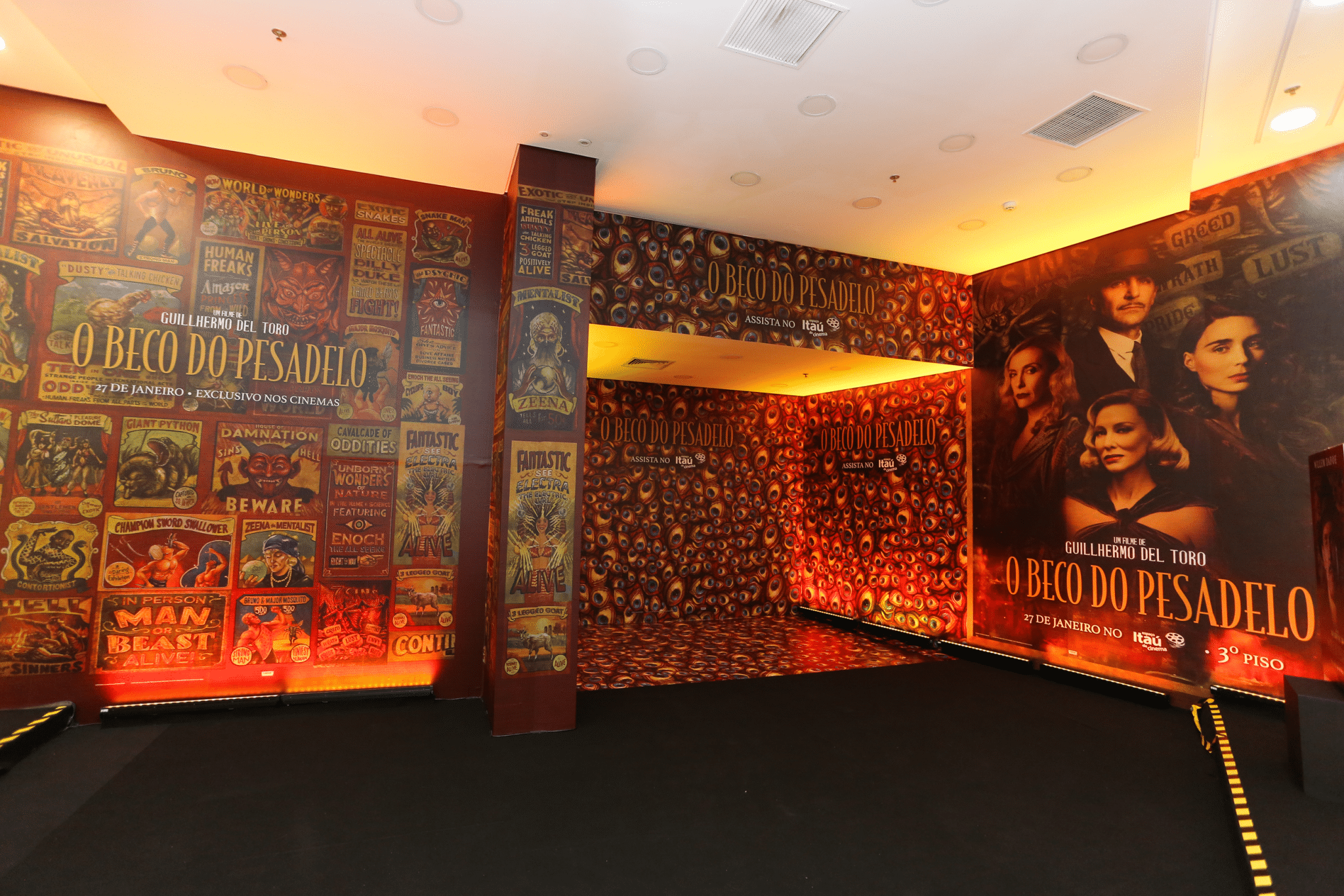A exposição terá a duração de 3 semanas e estará disponível no horário de funcionamento do shopping (de segunda a sábado, das 10h às 22h;e aos domingos e feriados, das 14h às 20h). O filme “O Beco do Pesadelo” tem a direção do vencedor do Oscar Guillermo del Toro, e a produção do ator Bradley Cooper, que também faz o papel do protagonista. No longa da Searchlight Pictures, estúdio de filmes norte-americano pertencente a The Walt Disney Studios, Stanton Carlisle (Bradley Cooper), um ambicioso trabalhador de um parque de diversões itinerante com um talento para manipular as pessoas através das palavras, se une à psiquiatra Lilith Ritter (Cate Blanchett) que é ainda mais perigosa que ele.