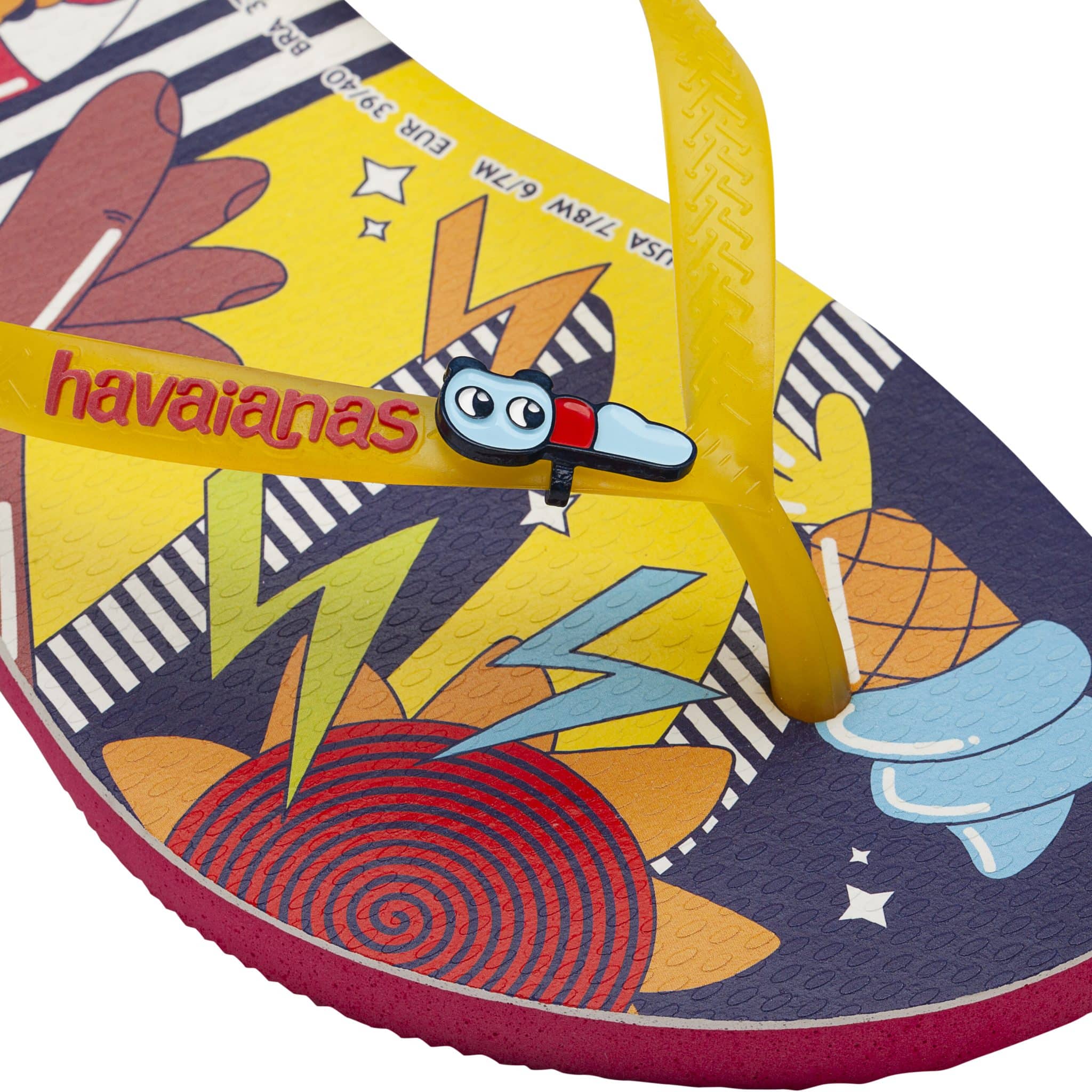 – A experiência fica ainda mais nostálgica e interativa, pois a collab traz dois pins exclusivos com o formato dos candies mais famosos de Fini: dentadura e minhoquinha para os fãs poderem fazer um programa em família e customizar suas Havaianas Top com o pin de dentadura e a Slim com a de minhoquinha.
