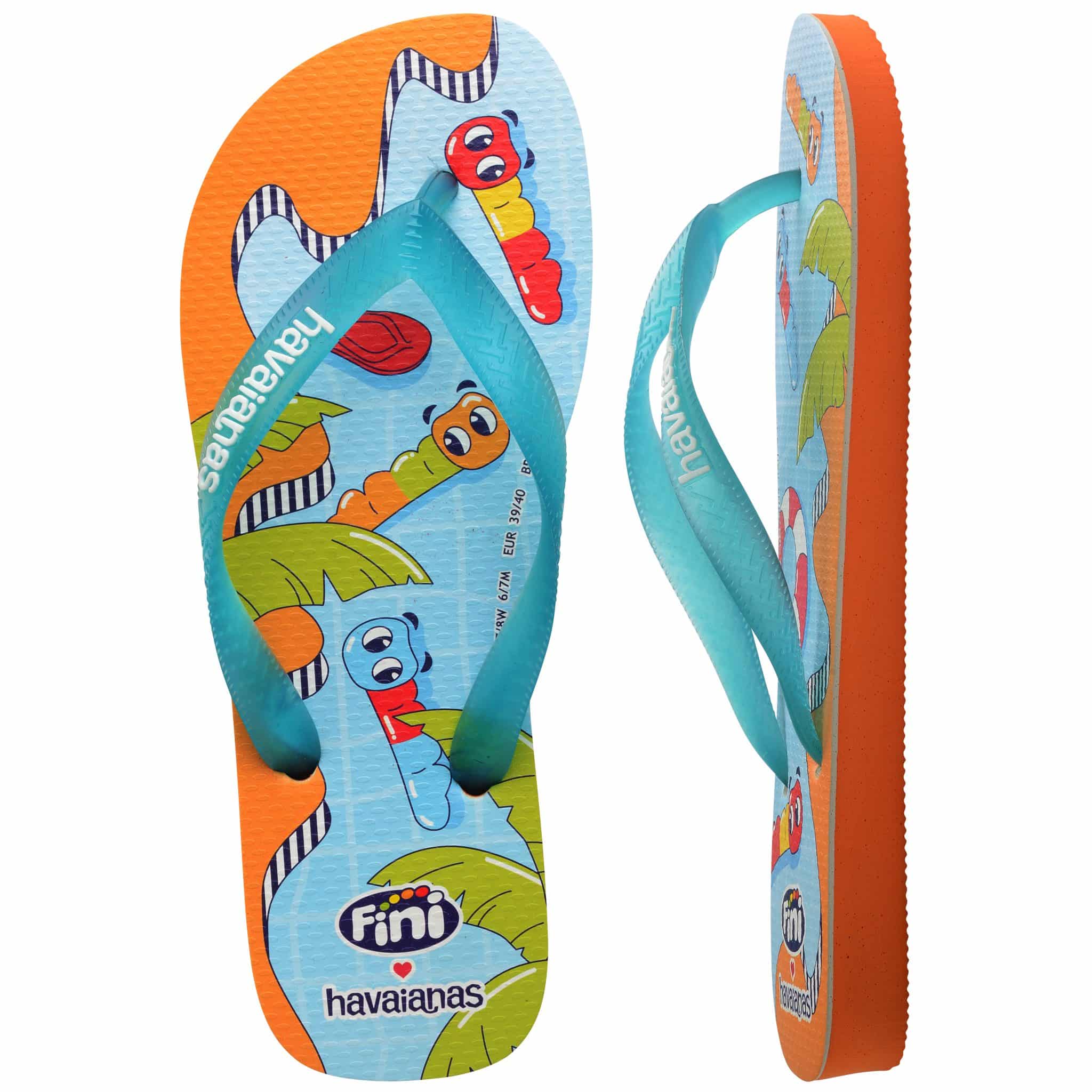 – A sandália Havaianas Top Fini tem as tiras azuis e uma estampa superdivertida, com as famosas minhoquinhas da bala Fini. Perfeita para espalhar alegria por onde for, possui numeração estendida do 23/24 ao 43/44, atendendo de crianças a adultos e trazendo, no design de Havaianas, o mundo repleto de aromas da Fini. A novidade deliciosa é que o calçado tem o cheirinho de morango das balas Fini