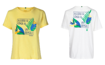 Já a linha de vestuário conta com dois modelos exclusivos de t-shirts. A Blusa Havaianas Time Brasil amarela, com modelagem slim, apresenta, na parte frontal, uma mensagem de estímulo, com os dizeres “Alegria & Ginga & Vai, Brasil”. A Camiseta Havaianas Time Brasil é branca e tem uma modelagem mais solta. Mais discreta, estampa as palavras de ordem “Alegria & Ginga & Vai, Brasil”, apenas nas costas.