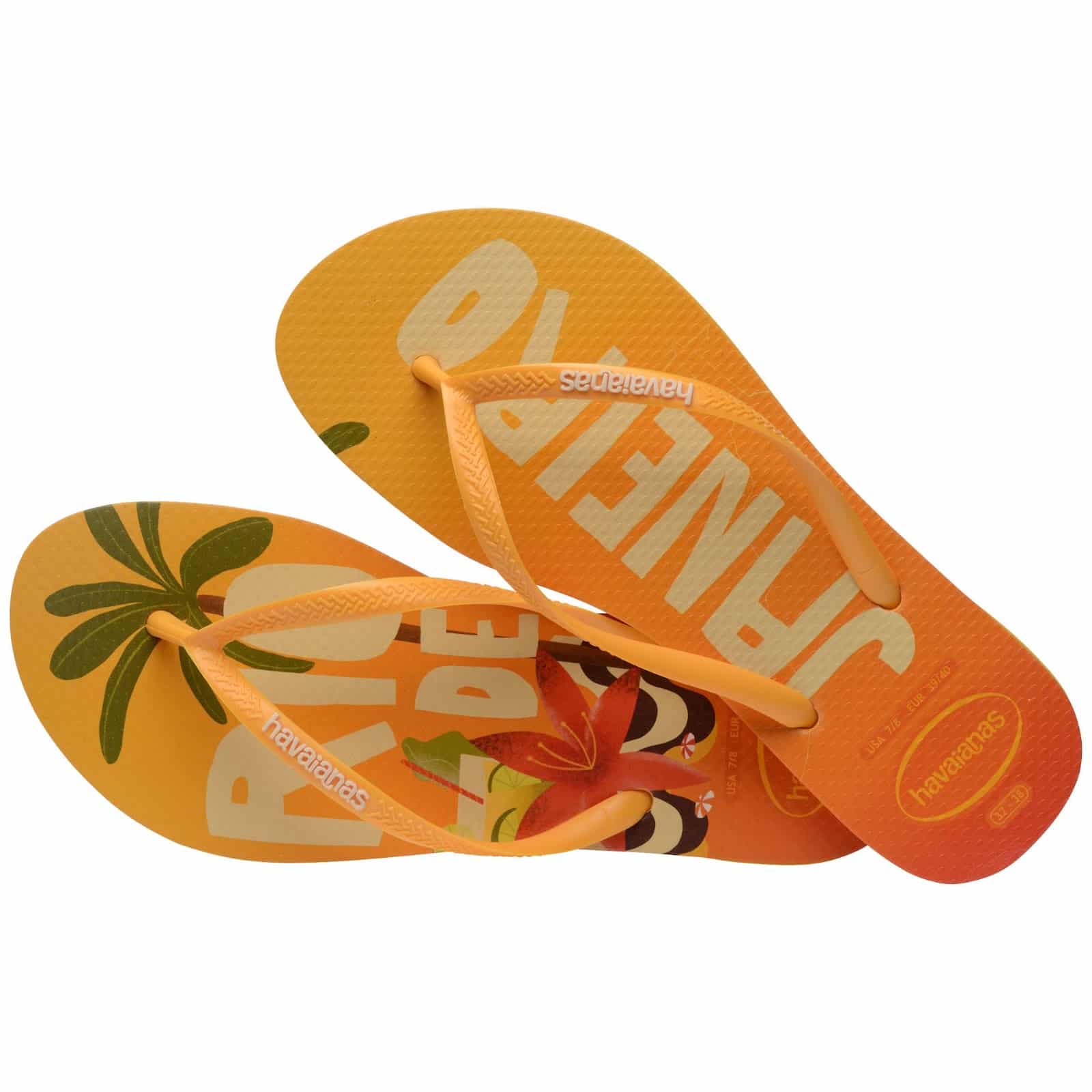 A estampa Sunkissed remete ao pôr do sol e traz um degradê para as Havaianas Top, com o logo pop-up para arrematar o modelo.