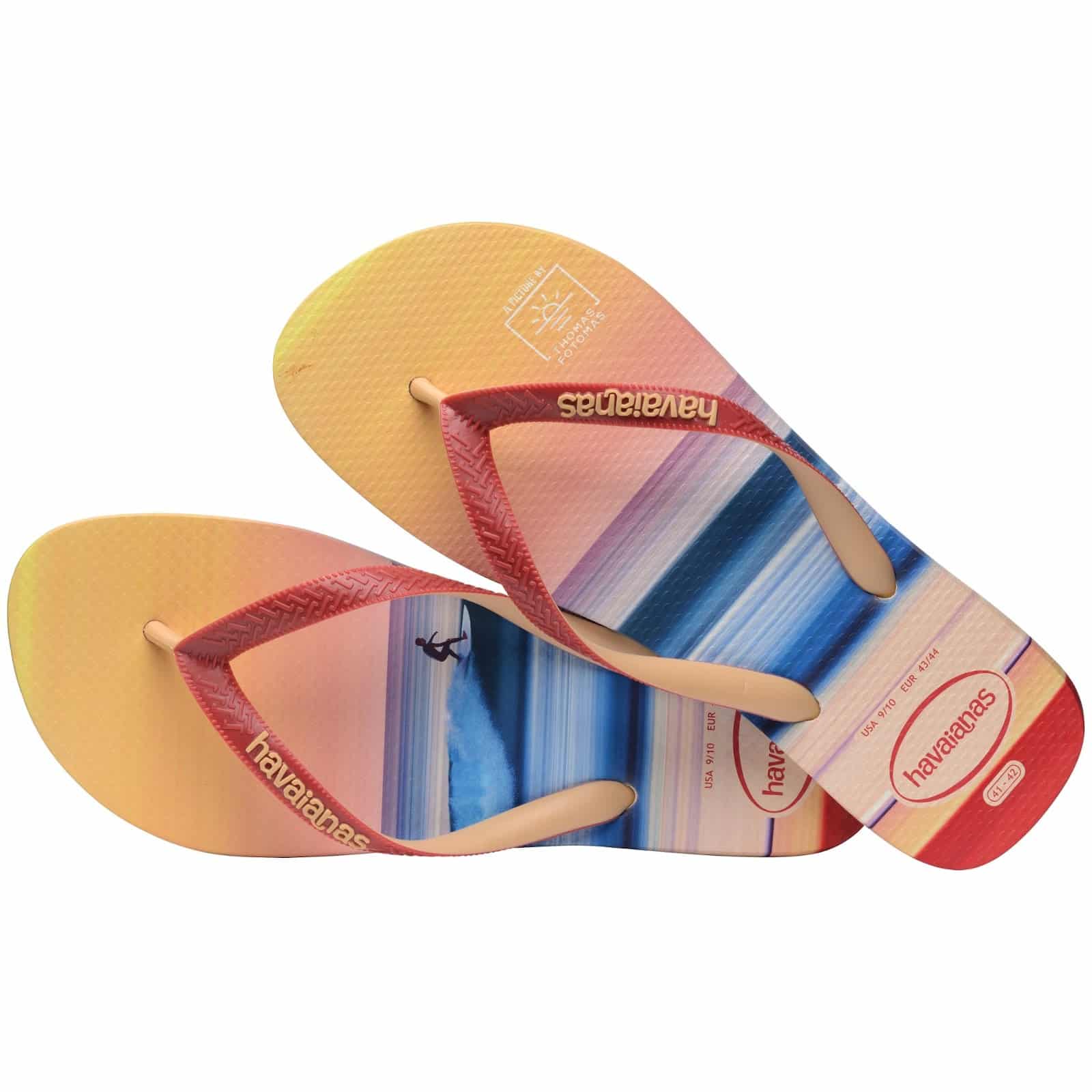 O artista francês Thomas Fotomas é o responsável pela estampa Beachscape, que completa a coleção, trazendo ainda mais o mood praiaino para as sandálias da coleção.