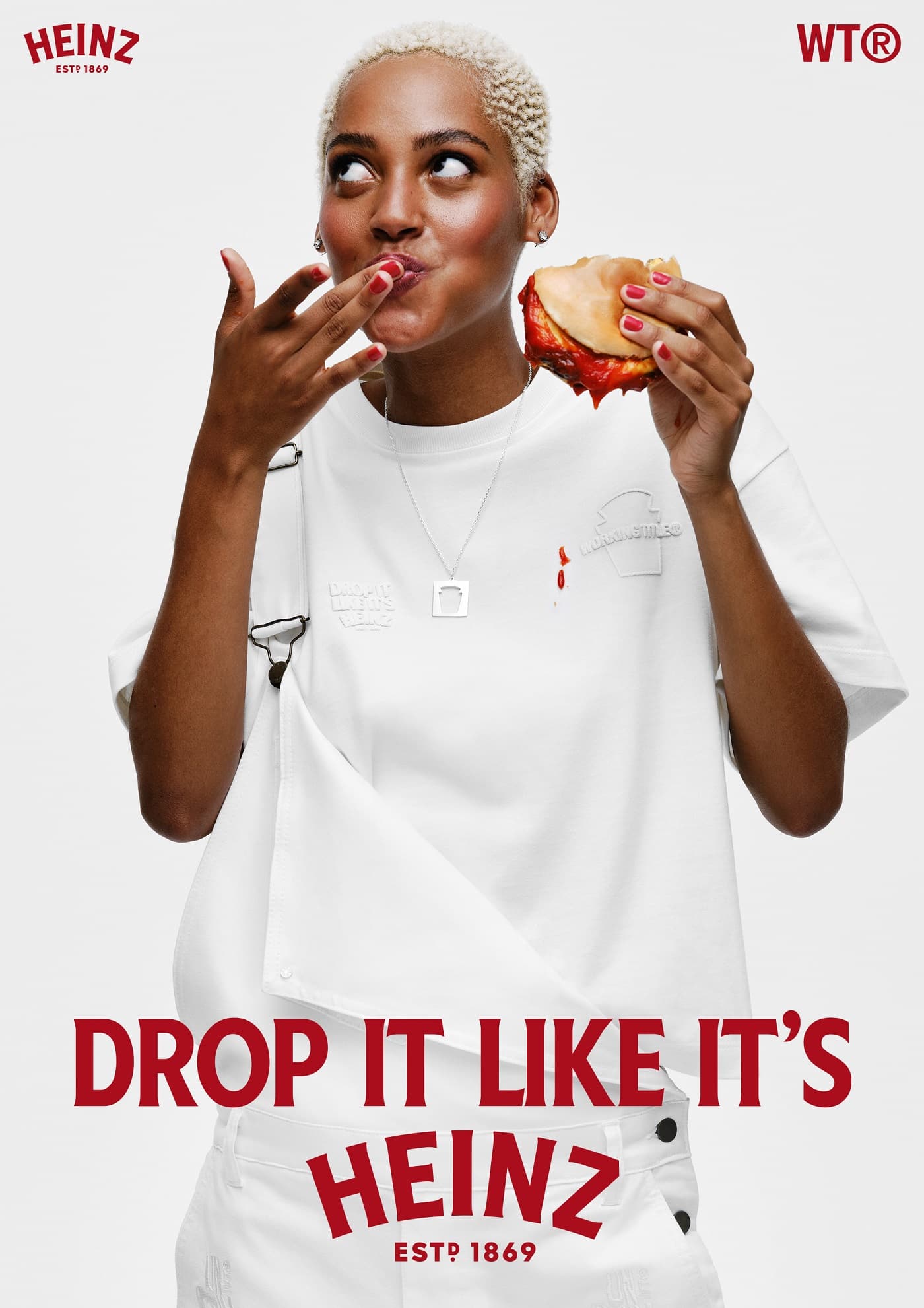 A Heinz apresenta a The Unstained Collection, uma coleção de roupas em parceria com a marca Working Title. A coleção, que é uma edição limitada e exclusiva, conta com dez peças diferentes, todas em off white e desenvolvidas em tecido hidro-repelente, impermeável, para que os consumidores possam se deliciar, deixar cair seus drops na roupa e não se preocupar, pois a peça não mancha com os drops do ketchup Heinz!