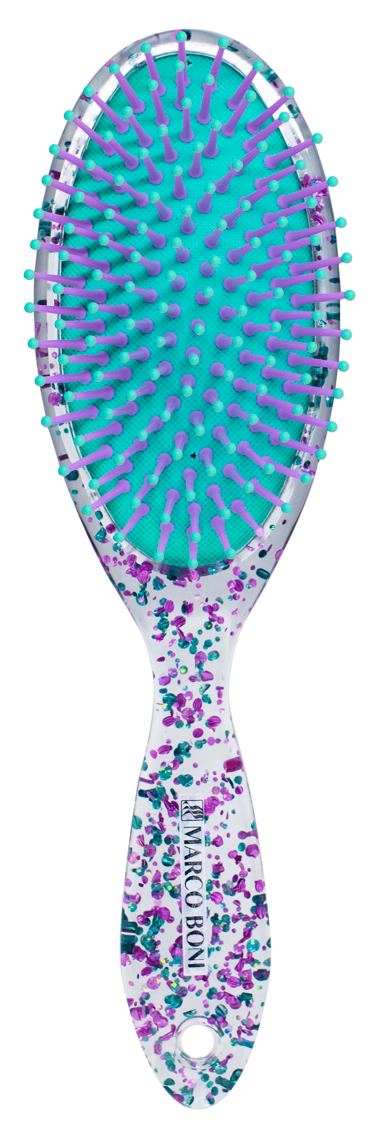 – Coleção Glitter: Pensada para o público jovem adulto de 16 a 25 anos. As escovas foram desenvolvidas com transparência e glitter “furta-cor” nas cores verde e lilás remetendo às cores da sereia. O destaque desta coleção é o Pente Garfo, símbolo de representatividade negra, essencial para acentuar volume de cachos e cabelos crespos.
