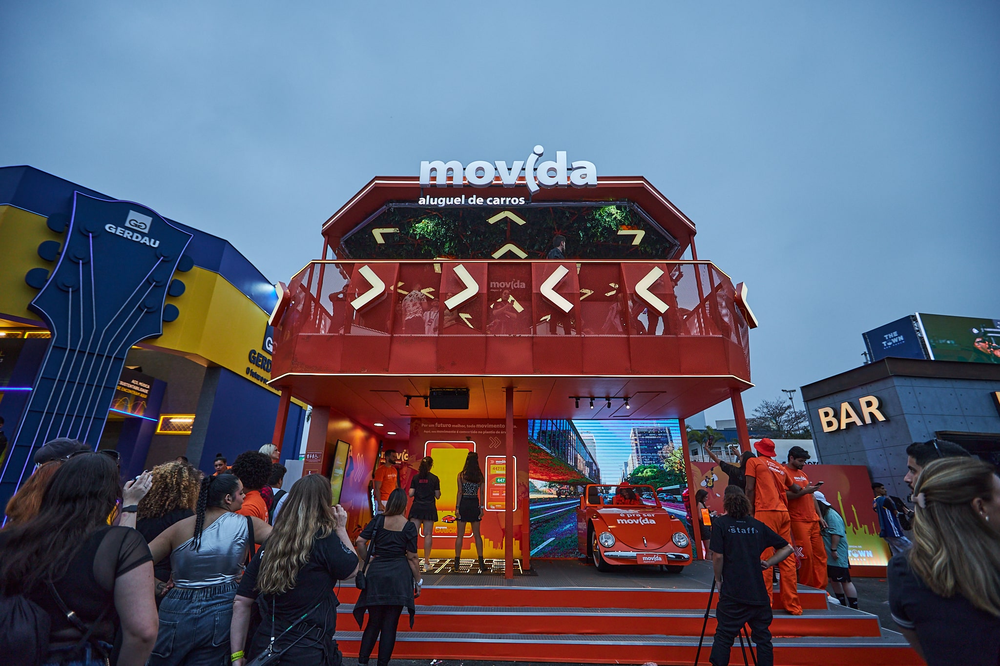 No festival, quem passar pelo estande da Movida, cuja idealização, execução e gestão são realizadas pela agência ARC Brasil, também poderá tirar fotos e fazer vídeos dentro de um carro, passando pelas mesmas ruas da cidade de São Paulo apresentadas nos palcos do The Town, para que os visitantes se sintam em uma verdadeira aventura metrópole adentro. Uma segunda réplica estará disponível para fotos e vídeos na área VIP do evento. Durante o evento, também haverá a distribuição de brindes exclusivos da marca, como sacochilas e viseiras estilizadas, para que os visitantes possam curtir os shows com estilo e conforto.