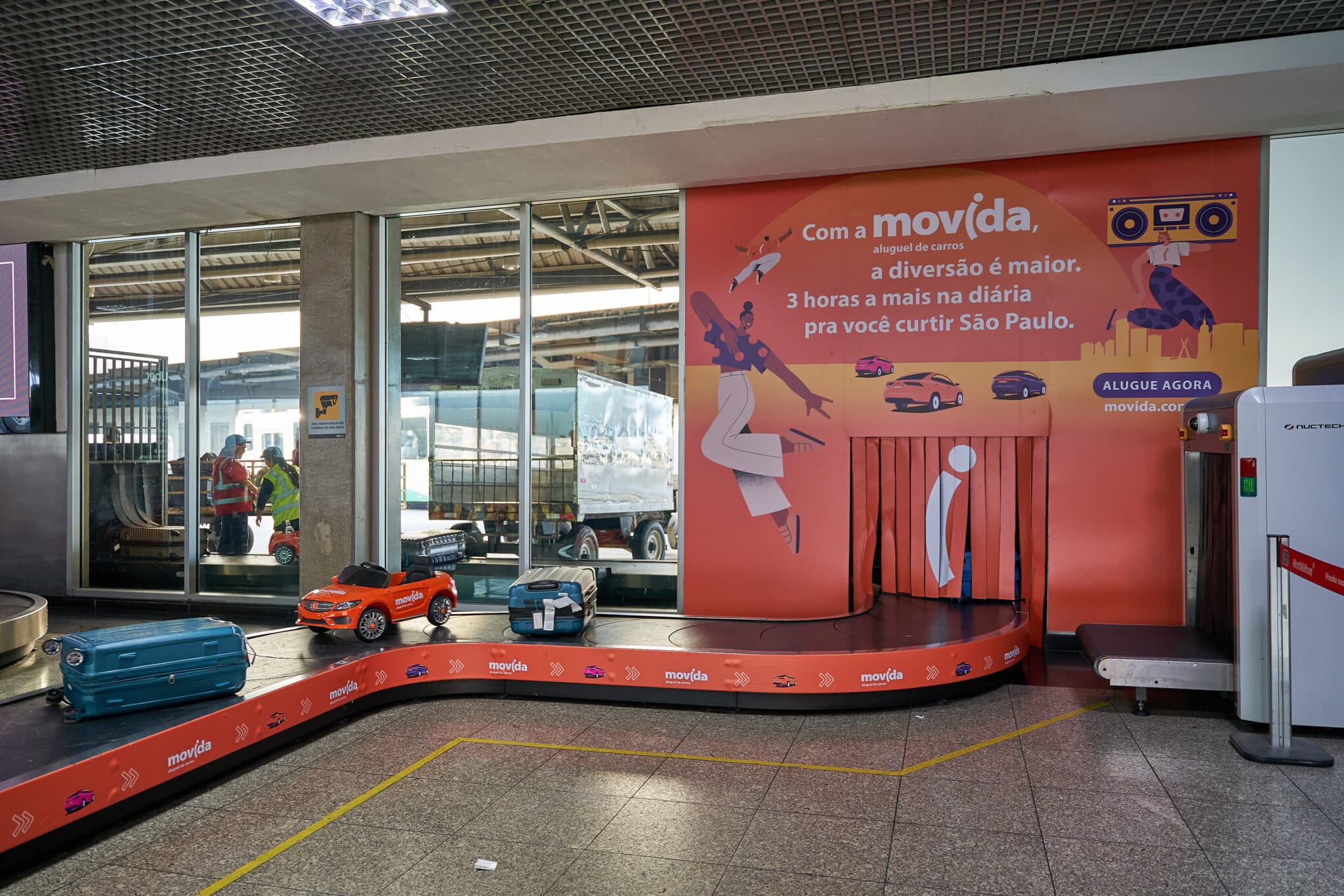 A Movida também conta com uma ativação no Aeroporto de Congonhas. Até o dia 10 de setembro, carros em miniatura com a cor laranja, marca registrada da empresa, percorrerão as esteiras de bagagem em dois terminais. A exposição tem como objetivo reforçar as facilidades, benefícios e vantagens que só a Movida oferece no aluguel de carros, como a diária 27h, com três horas de cortesia nas reservas.