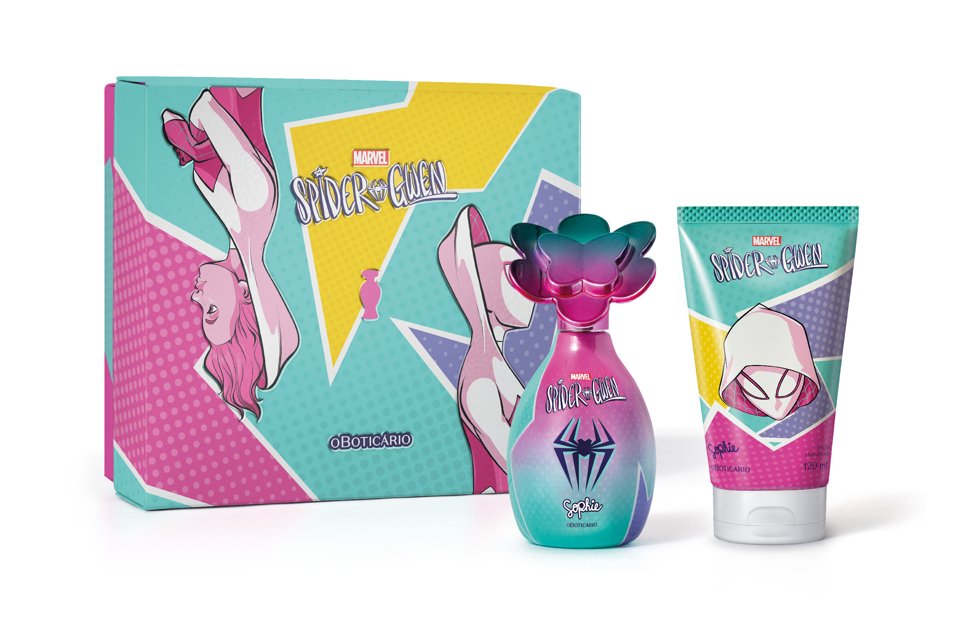 Já nos itens inspirados na Aranha-Fantasma, o grande destaque fica para a Sophie Colônia Spider Gwen, uma fragrância floriental gourmand com notas de frutas vermelhas, magnólia e baunilha. Assim como o lançamento masculino, ela também conta com um aporte funcional exclusivo, o Acorde Amazing Sense, composto por ingredientes que instigam a sensação de energia. Para complementar os cuidados, a marca também lança o Jelly Cream Spider Gwen, uma loção hidratante com o mesmo cheirinho, textura bifásica refrescante e acetinada, perfumação prolongada e hidratação por até 48 horas.