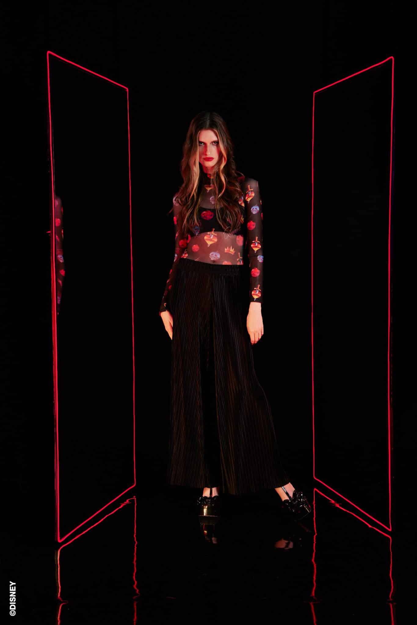 A nova linha de roupas que homenageia as vilãs apresenta estampas, modelagens e materiais inéditos que refletem o estilo de cada uma das personagens. A coleção inclui seis peças femininas em veludo molhado, tule, plissado e ponto roma. Para dar um toque especial às peças, cada uma delas possui uma plaquinha de metal com banho ônix, localizada na parte posterior, que traz o logo Disney Villains.