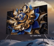 TCL X955 MAX 115’’: Com tecnologia 4K QD-Mini LED, esse televisor conta com sistema Google TV, IMAX Enhanced, Dolby Vision IQ e HDR10+ para maior qualidade de imagem. Além disso, vem com funcionalidades gamers como Game Accelerator, MEMC 120Hz, VRR 144Hz, DLG 240Hz e FreeSync Premium Pro. A X955 MAX possui sistema de som Onkyo, Dolby Atmos, DTS:Virtual X, 6.2.2 Canais, Bluetooth 5.2 e Wi-Fi. Esse modelo tem a maior tela QD-Mini LED do mundo com 115’’ e design ultrafino.