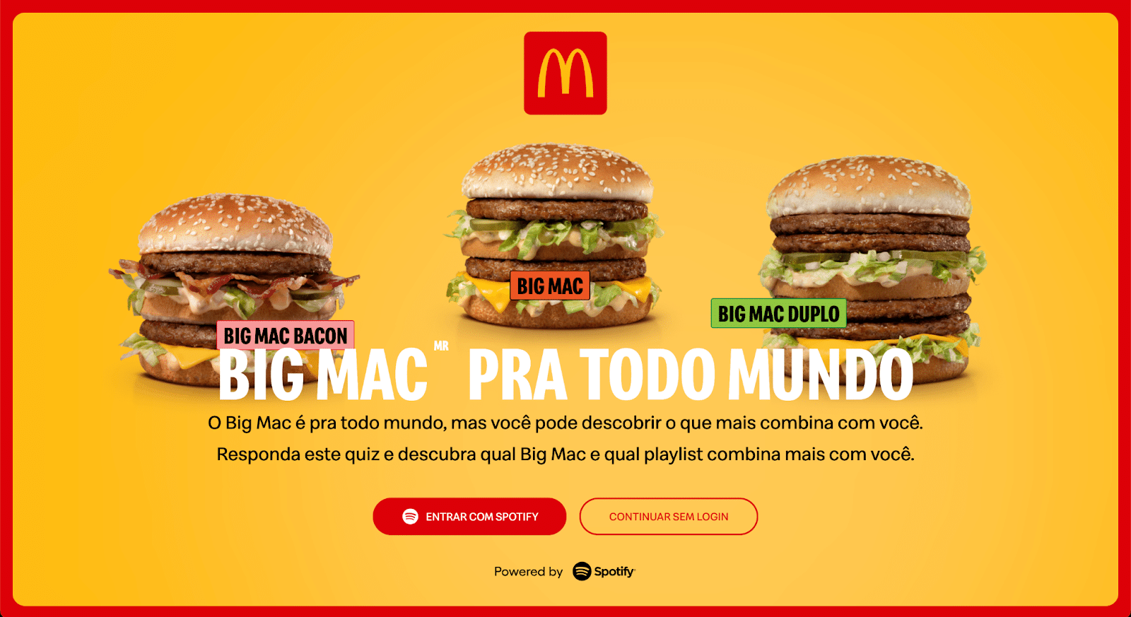 A campanha do McDonald’s teve como objetivo gerar awareness entre a geração Z para o Big Mac com o lançamento de duas novas versões do produto. Como parte de uma campanha multi formato, foram criados spots com a reinterpretação do clássico jingle do produto em gêneros diferentes: funk, pop, trap e sertanejo veiculados para suas respectivas audiências no Spotify.